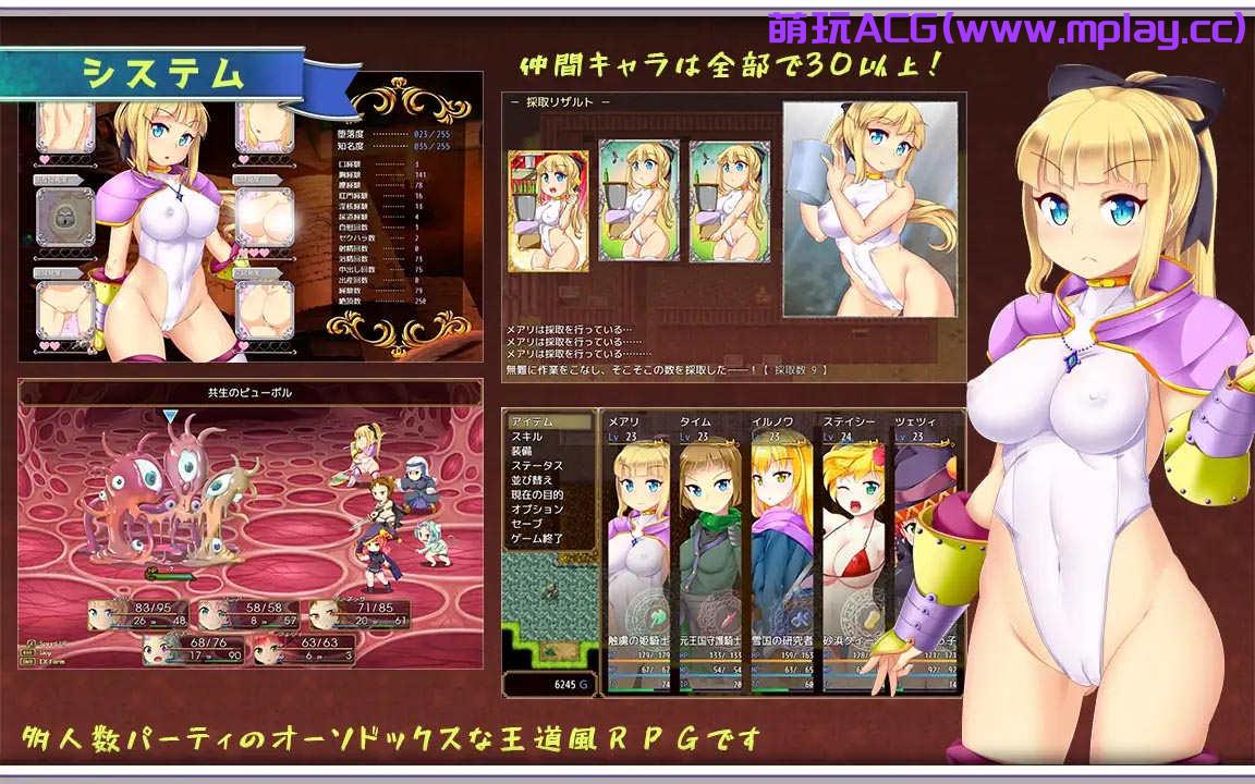 王国的二公主玛丽被敌人释放的雇佣兵俘虏。在失去战斗力和被触手羞辱的情况下一支来自王国的救援队正在前往公主身边的途中,但……这是一款皇家风格的触手羞辱 RPG 游戏,分为两部分:介绍营救公主的过程,以及以公主为主角的主要章节。